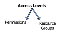 5. (Optional) If you want to edit access to a resource group, use the Resources tab (Resource Manager).This illustration shows the relationship between access levels, permissions and resource groups: